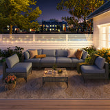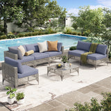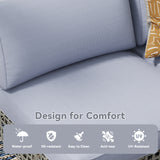 AECOJOY 7-Piece Patio Furniture Set with Tea Table in Grey Rattan&Blue Cushions