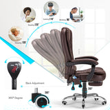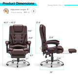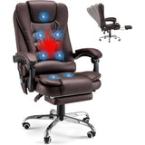 AECOJOY 7 Points Massage Office Chair with Heat Ergonomic Reclining Computer Chair High Back Desk Chair w/Retractable Footrest Ergonomic Leather Office Chair,Brown