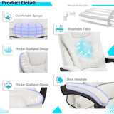 AECOJOY 7 Points Massage Office Chair with Heat Ergonomic Reclining Computer Chair High Back Desk Chair w/Retractable Footrest Ergonomic Leather Office Chair,Cream White