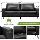 AECOJOY 79" Faux Leather Sofa 3 Seater Couch Loveseat Living Room Furniture in Black