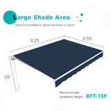 AECOJOY 8.2' x 6.5' Manual Retractable Patio Awning,Outdoor Awning Retractable Sunshade Shelter-Dark Blue