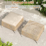 AECOJOY 8-Piece Patio Furniture Set, Boho Style Rattan Wicker Sectional Sofa Couch Outdoor Conversation Set with Table In Beige