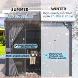 Premium Roof: The gazebo roof features high-quality flexible panels, which block 99% of UV rays with UPF 70+ in the summer. In winter, the roof can withstand up to 7 inches of snow, with a pressure tolerance of approximately 6 lbs per square foot, ensuring year-round durability.