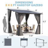 AECOJOY 8' x 8' Lean to Gazebo with Netting and Curtain Outdoor Hardtop Gazebo Aluminum Metal Pergola For Garden, Patio, Backyard-Dark Gray