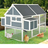 AECOJOY 84” Outdoor Chicken Coops for 10 Chickens Large Wooden Hen Chicken House, Walk in Chicken House with Run