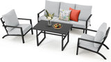 AECOJOY Aluminum Patio Furniture Set Metal Outdoor Furniture Aluminum Patio Set, Modern Patio Furniture Conversation Set High Back in Grey for Lawn, Backyard
