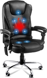 AECOJOY Ergonomic Reclining Office Chair, Heat & Massage High Back Desk Chair w/Adjustable Height, Executive Swivel Leather Chair for Office, Home, Study, Black
