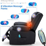 AECOJOY Leather Recliner Chair with Massage Heated Function, Home Theater Seating Sofa Black