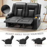 AECOJOY Manual Reclining Loveseat with Cup Holders&Side Pockets, PU Leather Double Recliner Loveseat Home Theater Seating-Black