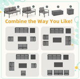 AECOJOY Metal Patio Furniture Set with Cover Outdoor Furniture sets With Storage Boxes on Sale with Grey Cushion for Balcony Porch, Lawn and More