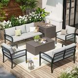 AECOJOY Metal Patio Furniture Set with Cover Outdoor Furniture sets With Storage Boxes on Sale with Light Grey Cushion for Balcony Porch, Lawn and More