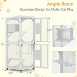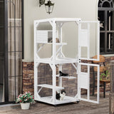 AECOJOY Outdoor Cat House with Wheels Wooden Catio Enclosure with Swing and Resting Box, White
