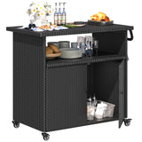 AECOJOY Patio Wicker Bar Tables with Wheels&Shelf Patio Serving Table Outdoor Storage Cabinet Outdoor Bar Cart, Black
