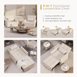 AECOJOY Sleeper Chair Bed 3 in 1 Sofa Bed for Adults Fold Out Sofa Convertible Reading Chair,Cream Beige