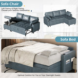 AECOJOY Sofa Bed, 3 in 1 Sleeper Sofa with Storage Chair, Faux Leather L Shape Couch, Sectional Pull Out Sofa Bed Mid Century Modern Couch for Living Room Clearance, Comfy Sleeper Couch in Blue