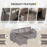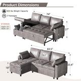 AECOJOY Sofa Bed, 3 in 1 Sleeper Sofa with Storage Chair, Faux Leather L Shape Couch, Sectional Pull Out Sofa Bed Mid Century Modern Couch for Living Room Clearance, Comfy Sleeper Couch in Grey