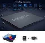 Android 9.0 Smart TV Box, Player Media 6K Resolution 4GB RAM 64GB ROM, RK3318 Chip Quad Core 64-bit, 2.4Ghz+5Ghz WiFi HDMI2.0 USB3.0 Support TF Card