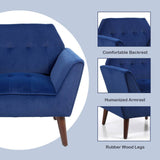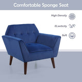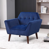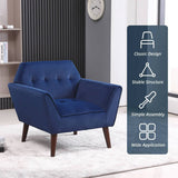 Mid Century Modern Arm Chair, Upholstered Sofa Chairs with Rubber Wood Legs Blue
