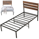 AVAWING 14.2 Inch Twin Bed Frames with Headboard & Steel Slats Support, Modern Metal Platform, Mattress Foundation, No Box Spring Needed, Easy Assembly, Black