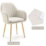 AVAWING Accent Arm Chairs Velvet Dining Chairs Set of 4 Upholstered Dining Chairs with Arms Mid Century Modern Dining Chairs with Golden Legs Kitchen Chairs, Beige