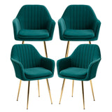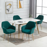 AVAWING Accent Arm Chairs Velvet Dining Chairs Set of 4 Upholstered Dining Chairs with Arms Mid Century Modern Dining Chairs with Golden Legs Kitchen Chairs, Green