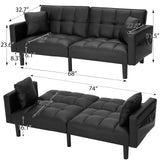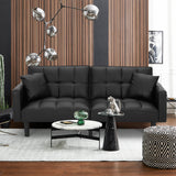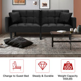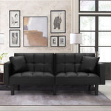 AVAWING Futon Sofa Bed Modern Convertible Sofa Bed Faux Leather Tufted Upholstered Accent Sofa and Couches with 2 Pillows, Water Resistant Couch Recliner for Living Room, Bedroom, Luxury Black