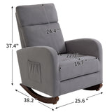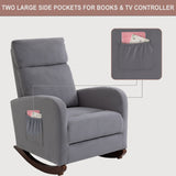AVAWING Home Rocking Chair, Mid Century Glider Chair Upholstered Frosted Velvet High Back Arm Chair Nursery Rocking Chairs with Solid Legs and Side Pockets (Gray)