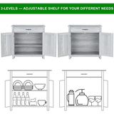 AVAWING Kitchen Sideboard with Drawer & 3-Tier Adjustable Shelves Sideboard Kitchen Cupboard Buffet Server Cabinet Organizer, Gray
