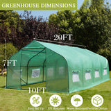 AVAWING Large Outdoor Greenhouse, 20x10x7 ft Walk in Greenhouse Tunnel with Heavy Duty Galvanized Steel Frame, Zippered Door & 8 Roll-up Windows Green Houses for Outside Garden Plant, Green