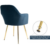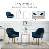 AVAWING Modern Living Dining Room Accent Arm Chairs Set of 2, Velvet Mid-Century Upholstered Seat Club Guest with Golden Legs, Blue