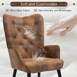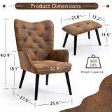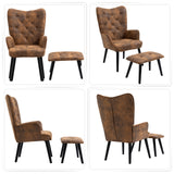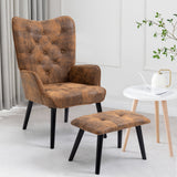 AVAWING Rustic Accent Chair with Footrest, Gold Accent Chair with Arms, Tufted Button Back Modern Accent Chair with Rubberwood Legs, Mid Century Accent Chair for Living Room, Bedroom, Office, Gold