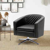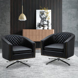 AVAWING Swivel Accent Chair, Accent Chair Set of 2 Leather Accent Chair Club Chair with Wide Seat, Sturdy Metal Legs Mid-Century Upholstered Chair for Living Room, Bedroom, Reception Room (Black)