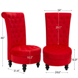 AVAWING Throne Royal Chair Set of 1 for Living Room, Button-Tufted Accent Armless High Back Chair with 24.6 Inch Larger Seat, Thick Padding and Rubberwood Legs, Enthusiastic Red