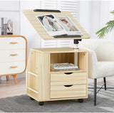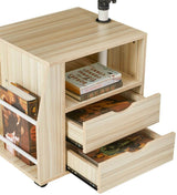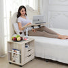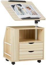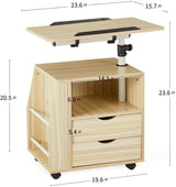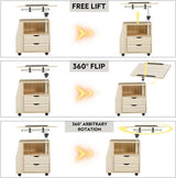Bedside Table Height Adjustable End Table, Wooden Nightstand with Swivel Top, Storage Drawers & Universal Wheels, White Maple