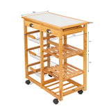 Kitchen & Dining Room Cart 2-Drawer Removable Storage Rack with Rolling Wheels Wood Color