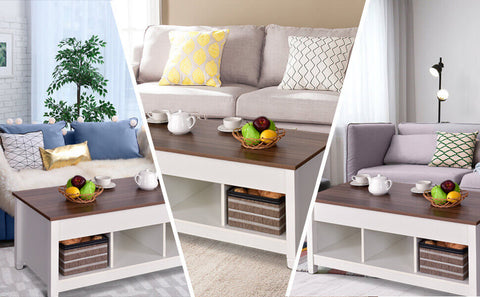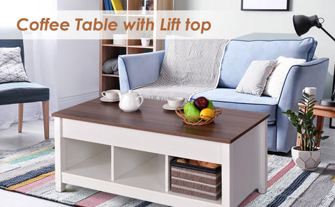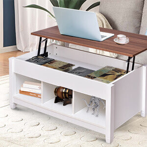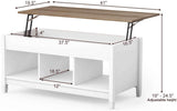 Lift Top Coffee Table Living Room Modern Pop-Up Storage Coffee Table with Hidden Compartment, White