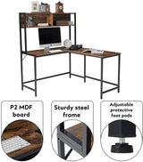 Computer Desk with Hutch Space-Saving Corner Desk with Storage Shelves 55 Inch L-Shaped