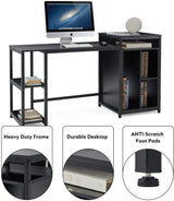 Computer Desk with Storage Bookshelves 47 inch Modern Sturdy Writing Desk for Home Office Black