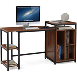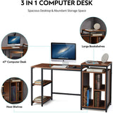 Computer Desk with Storage Bookshelves 47 inch Writing Desk for Home Office Brown