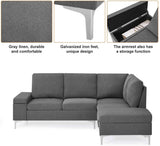Convertible Sectional Sofa Couch with Ottoman, Sofa Armrest with Storage Function, L-Shaped Sofa with Gray Linen Fabric, for Living Room or Apartment (Right)