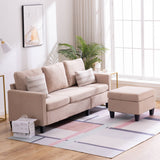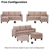 Convertible Sectional Sofa Couch, L-Shaped Couch with Modern Linen Fabric for Small Space, Beige
