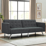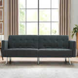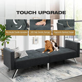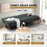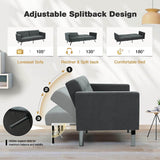 Convertible Futon Sofa Bed w/ Adjustable Backrest, Chenille Fabric Sleeper Couch Split-Back Folding Loveseat, Dark Grey