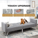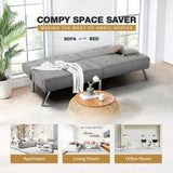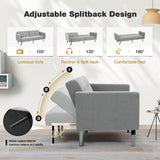 Convertible Futon Sofa Bed w/ Adjustable Backrest, Chenille Fabric Sleeper Sofa Couch, Split-Back & Folding Loveseat, Light Grey