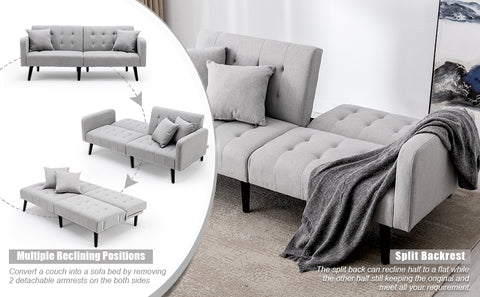 Convertible Foton Sectional Sleeper Sofa Bed Couch Small Apartment Furniture Light Gray