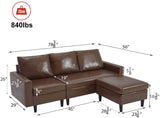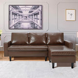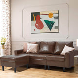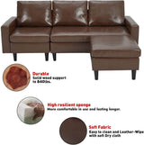 Convertible Sectional Sofa Couch, 3-seat Sofa Couch with Ottoman, L-Shaped Sofa with Modern PU Leather Fabric, for Living Room or Apartment (Brown)