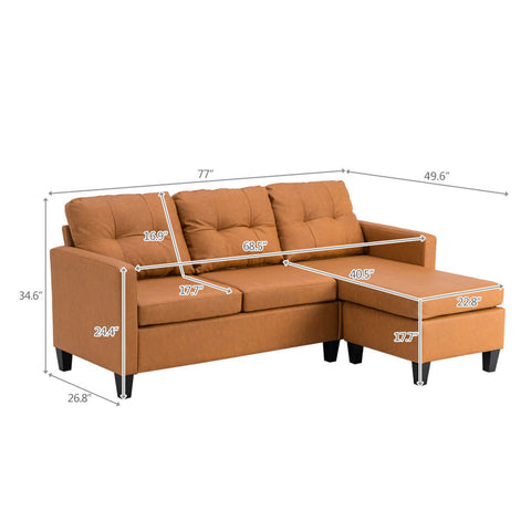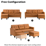 Convertible Sectional Sofa Couch, L-Shaped Couch with Modern PU Leather for Small Space, Light Brown