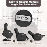 Danrelax Power Lift Chair Recliner Sofa for Elderly, Heavy Duty & Safety Motion Reclining Mechanism, 2 Side Pockets and Cup Holders, USB Ports, Black