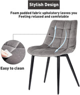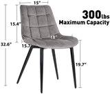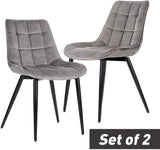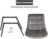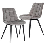 Velvet Dining Chairs Set of 2 Mid Century Modern Leisure Upholstered Chair with Metal Legs Grey