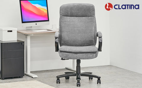 Ergonomic Executive Office Chair with Fabric Upholstery Adjustable Height Thick Padding Headrest & Armrest, Gray