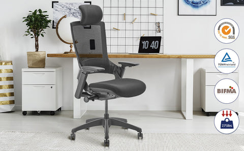 Ergonomic High Swivel Executive Chair with Adjustable Height Head 3D Arm Rest Lumbar Support, Black Mesh